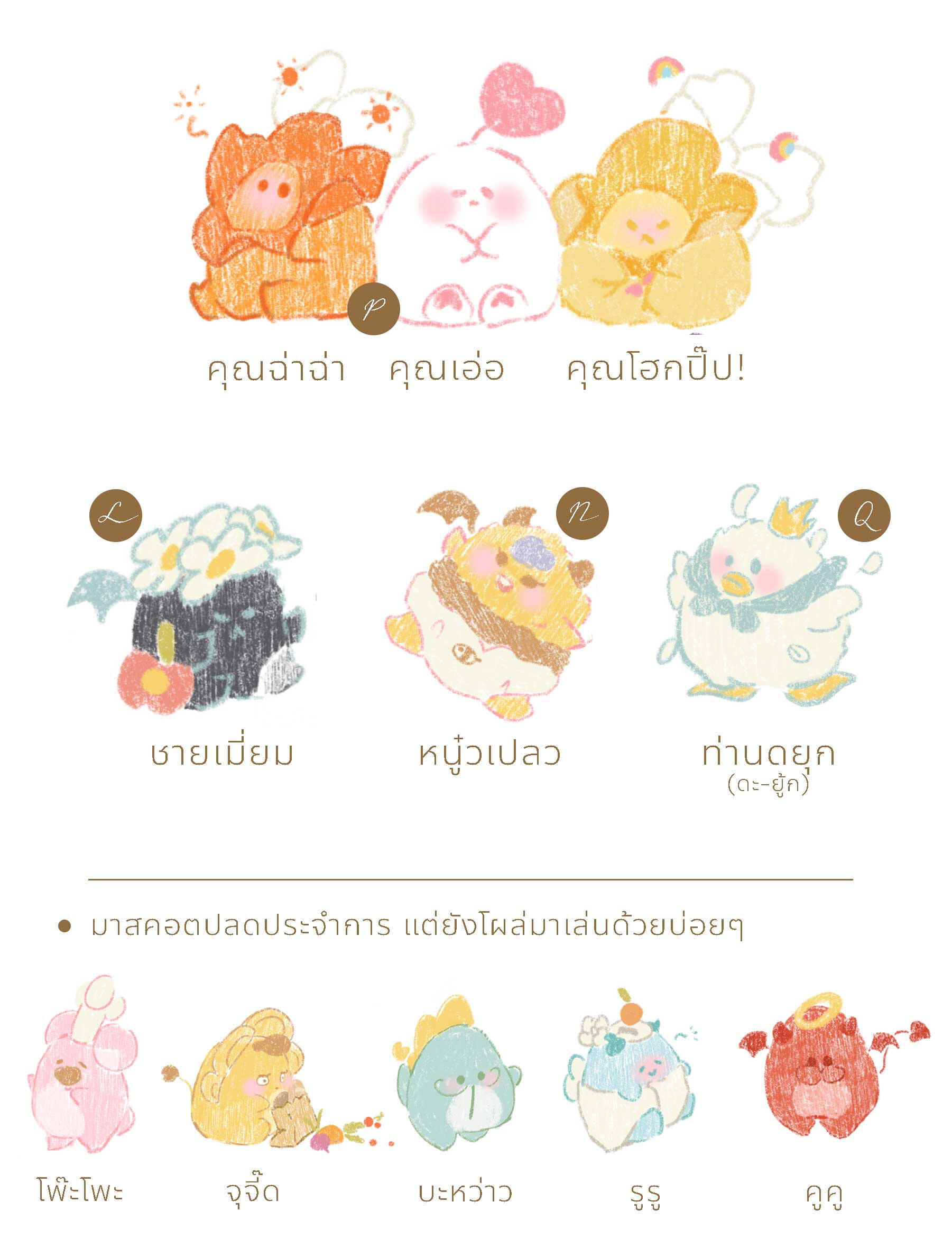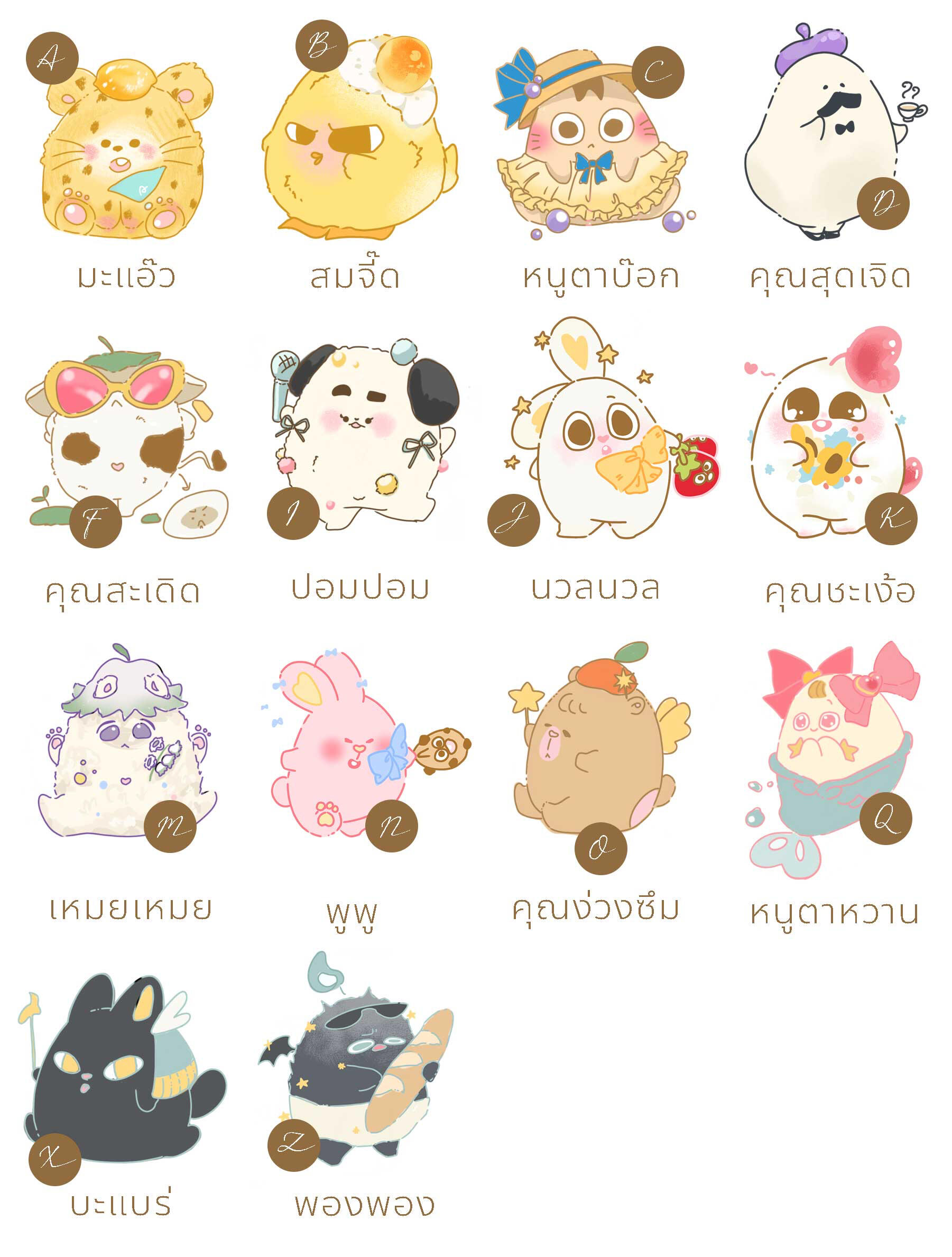 สามารถดูได้ว่าแต่ละอวบมาจากเรื่องไหนจากพยัญชนะในวงกลมสีน้ำตาลเหมือนกัน